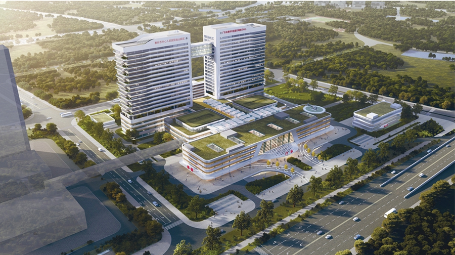 市中心人民醫(yī)院省級(jí)區(qū)域醫(yī)療中心建設(shè)項(xiàng)目(金山院區(qū)一期)效果圖。 惠州市衛(wèi)生健康局提供