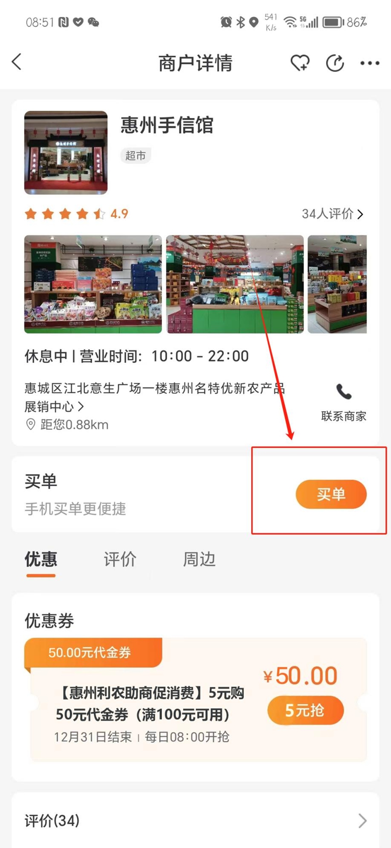 4.選擇第一個(gè)“惠州手信館”進(jìn)入商戶