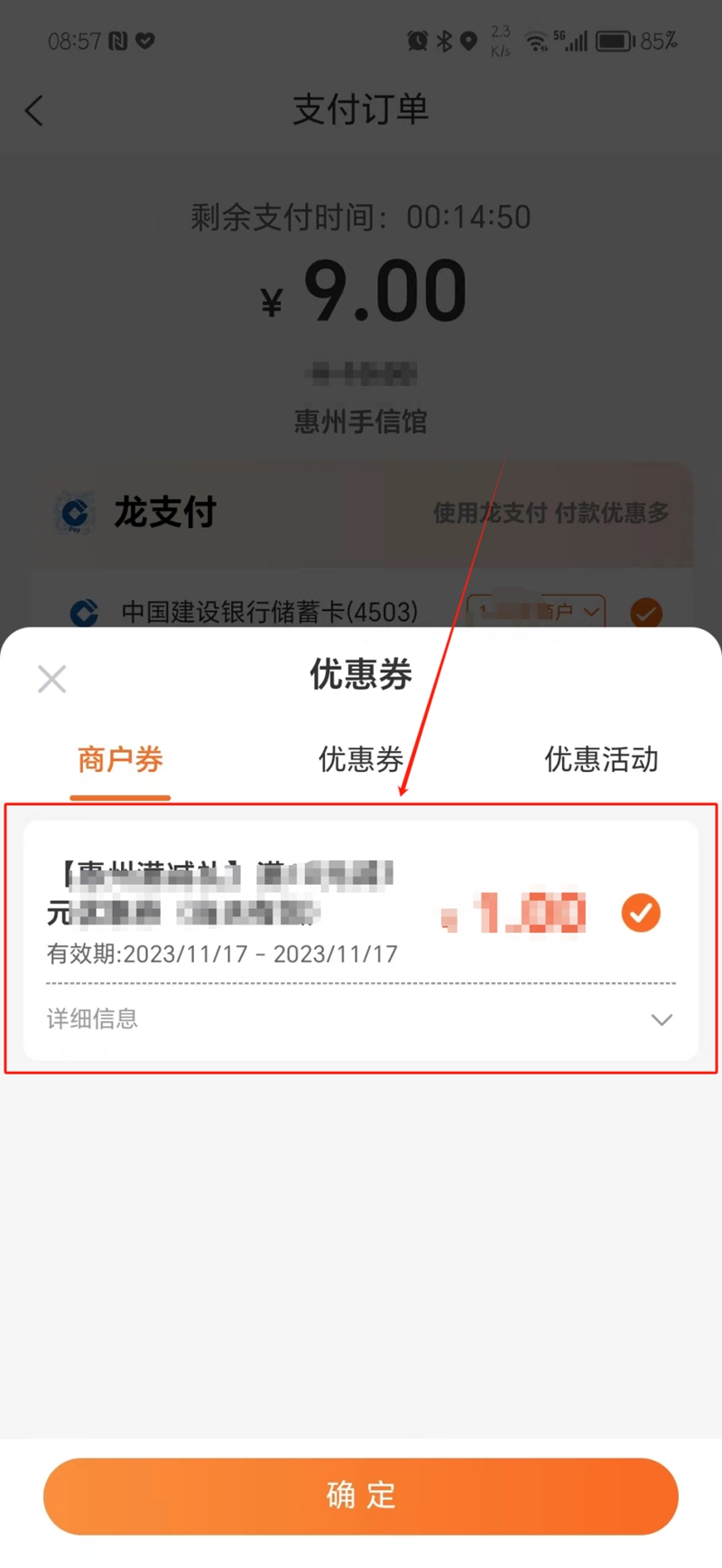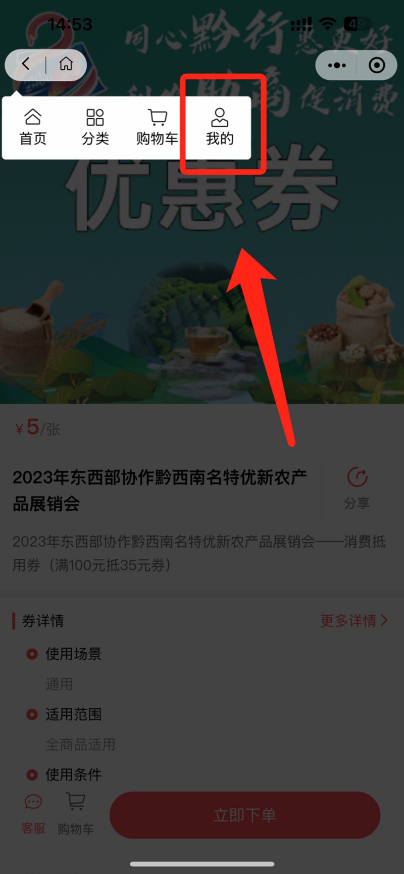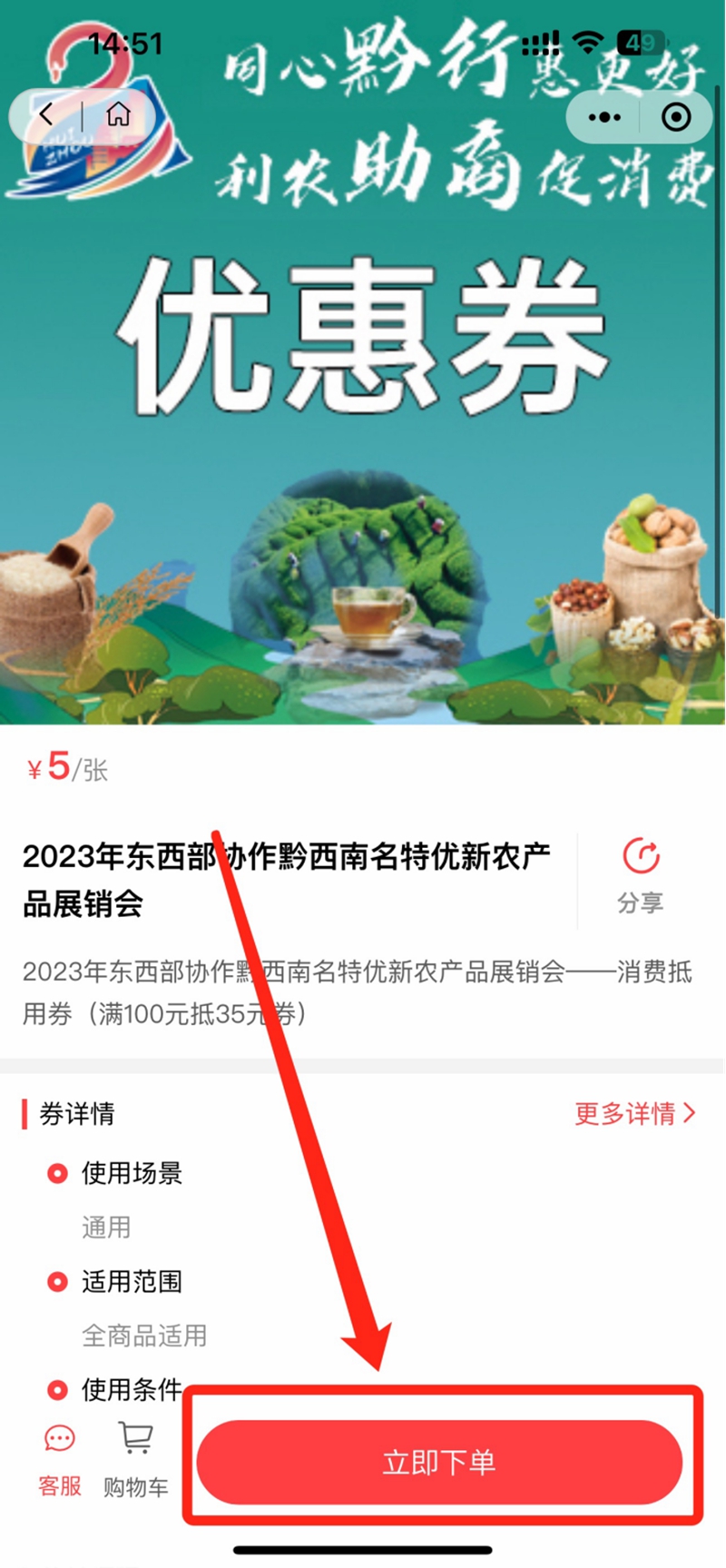 2.支付五元下單購(gòu)買(mǎi)消費(fèi)券