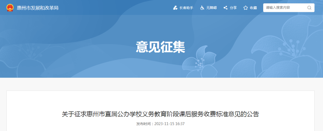 義務教育階段課后服務收費標準意見的公告》