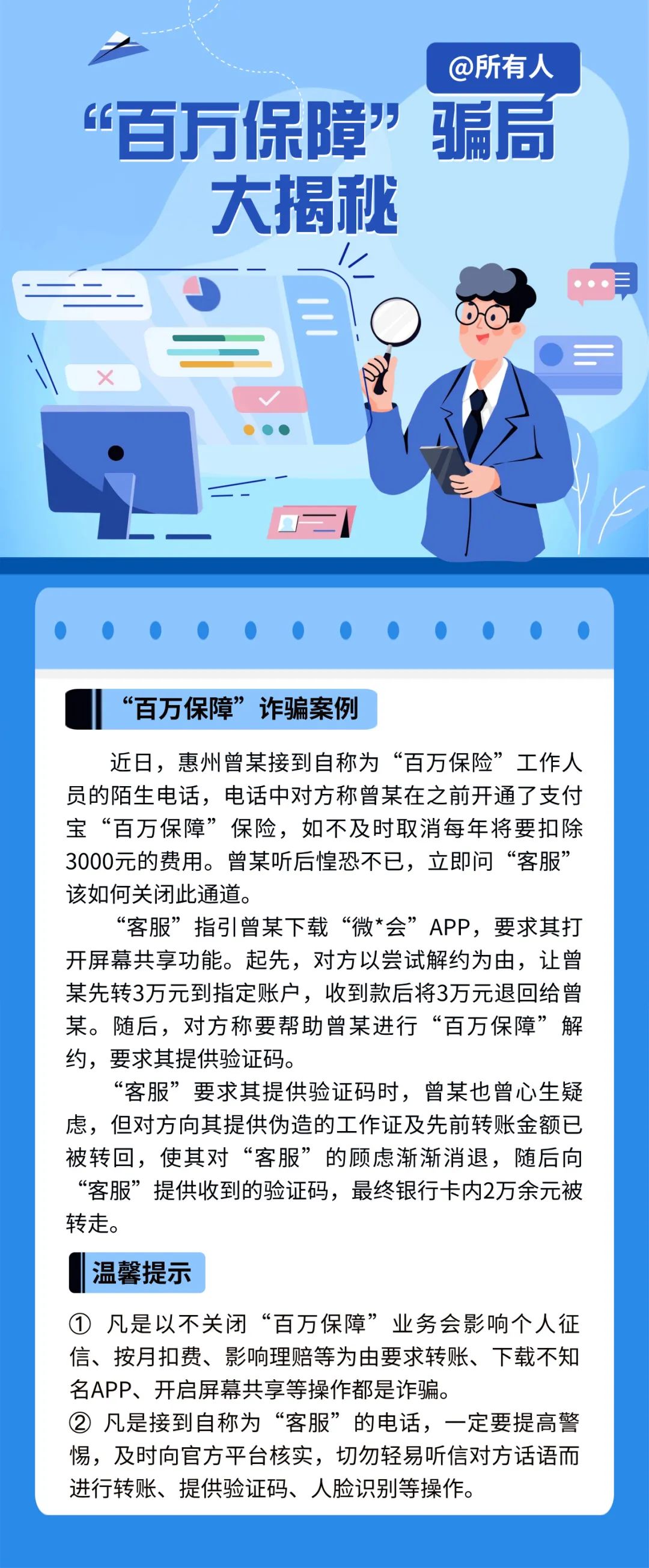 2、凡是以不關(guān)閉微信“百萬保障”業(yè)務(wù)會(huì)影響個(gè)人征信、按月扣費(fèi)、影響理賠等為由要求轉(zhuǎn)賬的,都是詐騙!