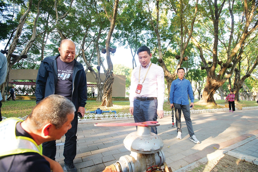 人大代表在檢查東江沙公園內(nèi)的消防栓。惠州日?qǐng)?bào)記者張藝明 黃鑫威 攝