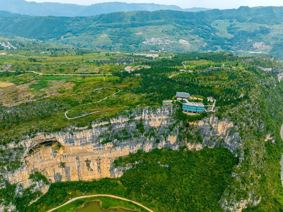 在安龍縣篤山鎮(zhèn)梨樹村,有高165米、寬200余米的巨型絕壁,四周峰叢圍合形成的山谷之間有千余畝的平地,絕壁之下有蜿蜒流淌的筏子河,還有17.6公里的溶洞群。豐富的地表形態(tài)和自然資源,成為戶外運動的天然場所。2016年,當地啟動建設安龍山地公園,其中一期項目就包括建在懸崖上的溶巖美術館。該美術館外觀呈平緩的月牙形狀,整座館建在原來崖壁的塌陷區(qū),剛好將這一塊崖壁的缺口補齊,猶如一個鑲嵌于峭壁之上的寶盒,好似懸浮在懸崖之上?上в捎谇捌谫Y金投入不足、配套設施不完善、經營管理粗放等原因,公園陷入低效運營狀態(tài)。