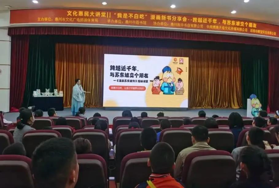 “我是不白吃,我真是太有文化了!”11月18日,文化惠民大講堂再開講,全網(wǎng)粉絲超7000萬(wàn)的網(wǎng)紅IP“我是不白吃”團(tuán)隊(duì)帶著全新力作《漫畫蘇東坡傳》到惠州市圖書館舉行新書分享會(huì),以“跨越千年,和蘇東坡交個(gè)朋友”為主題,用二次元的視角解讀北宋大文豪蘇東坡。