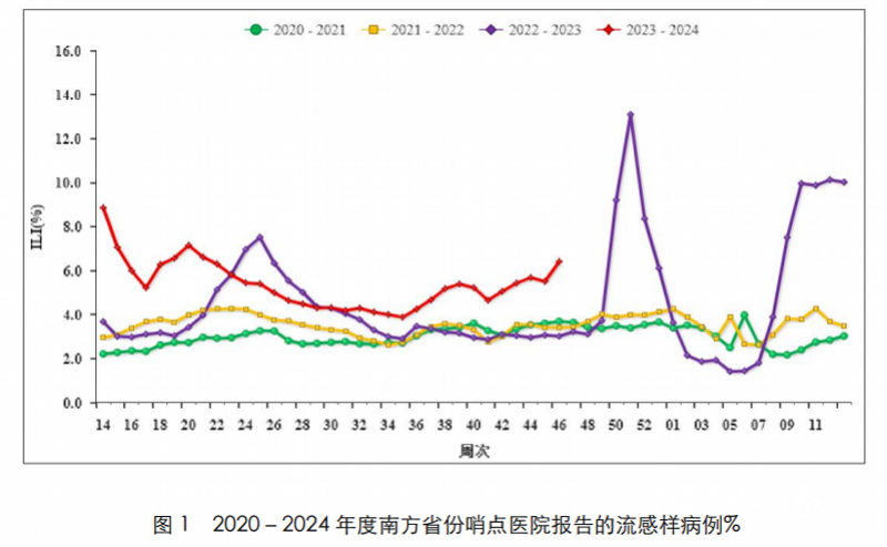 11月23日,國家流感中心最新發(fā)布的流感監(jiān)測周報顯示,南方省份哨點醫(yī)院流感樣病例占門急診數(shù)的比例升至近三個月來的新高,達到6.4%;約三成的流感樣病例測得流感陽性,南方省份的流感陽性率高于北方省份。