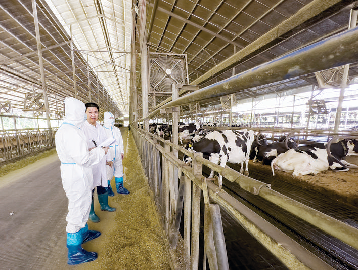 惠州海關(guān)關(guān)員在奶牛場(chǎng)開(kāi)展監(jiān)管作業(yè)。 惠州日?qǐng)?bào)記者劉煒煒 通訊員張小雄 攝