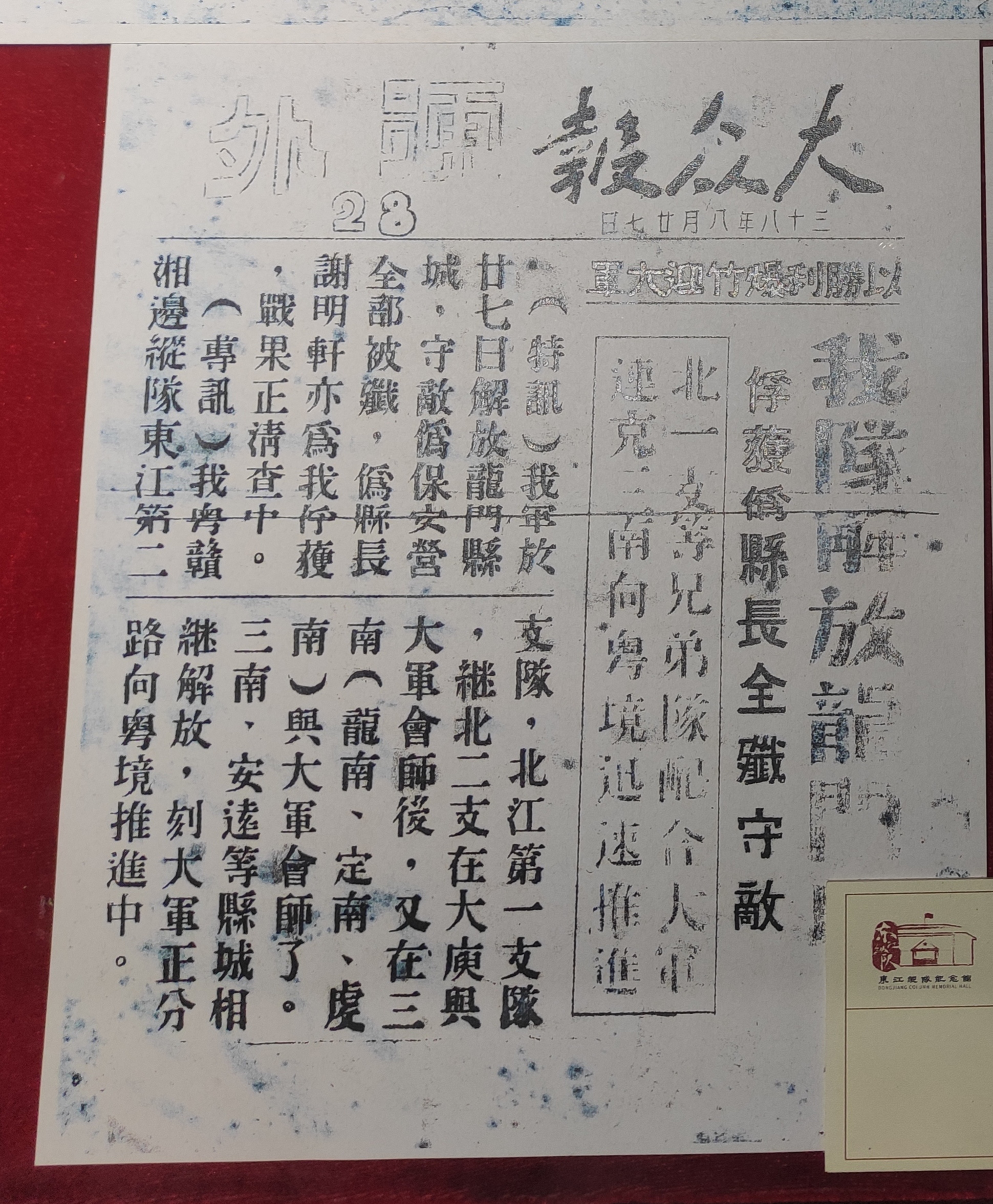 這兩份東江流域的《大眾報(bào)》,有力地促進(jìn)了江北地區(qū)解放事業(yè)。