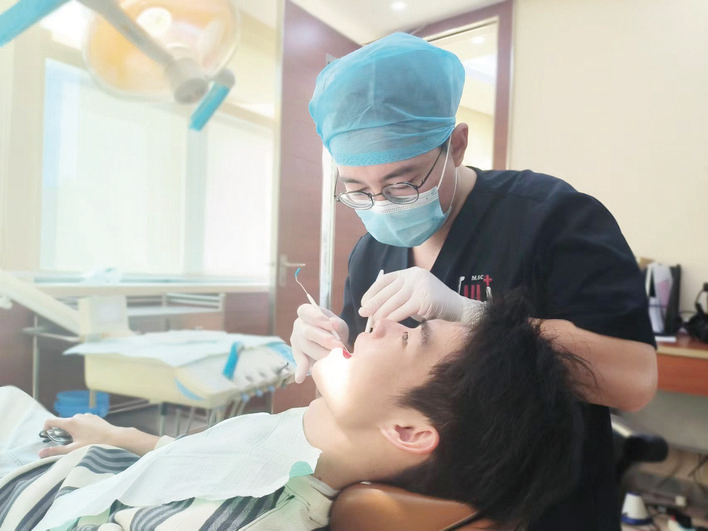 圖為蔣忠偉為患者做檢查。 本組圖片由致美口腔醫(yī)院提供