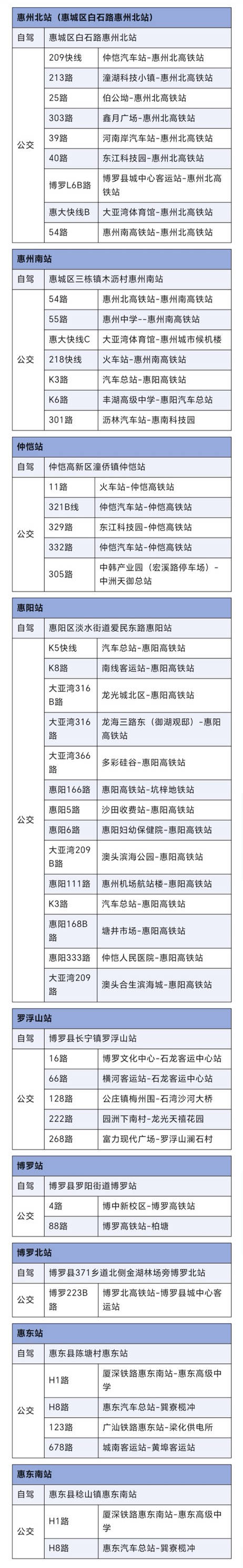 惠州9個(gè)高鐵站自駕、公交指引