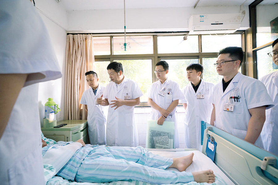 骨科團隊查房,了解患者恢復情況。