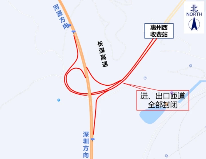 長深高速惠州西收費(fèi)站交通管制示意圖。