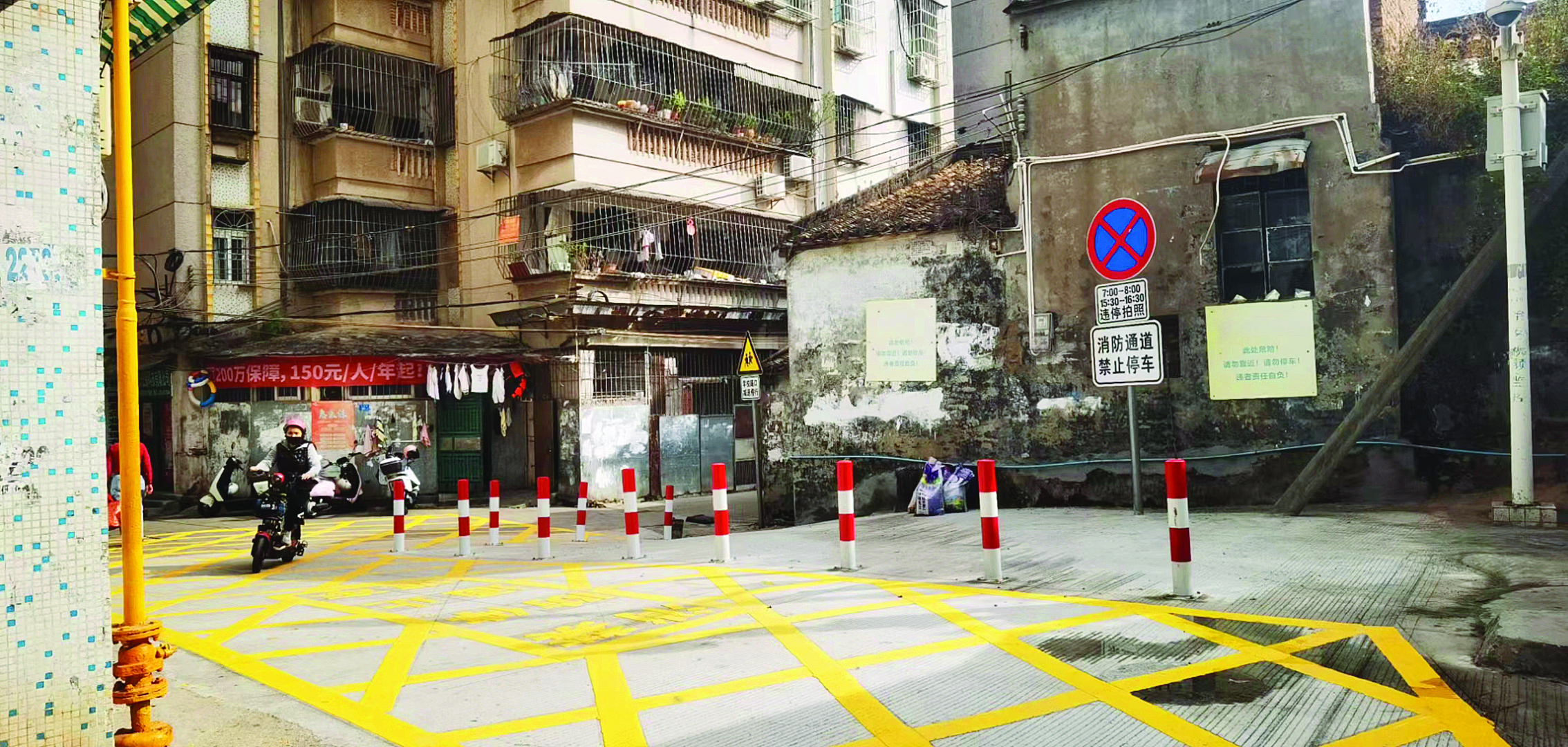 今年11月初,更樓下社區(qū)組織對(duì)破舊路段進(jìn)行升級(jí)改造。改造完成后,公安交警部門畫上交通標(biāo)識(shí)標(biāo)線的同時(shí),還把之前經(jīng)常亂停放車輛的區(qū)域用固定停車樁圍起來(lái),方便接送學(xué)生的家長(zhǎng)臨時(shí)停放電動(dòng)車。