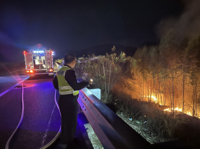 12月10日18時(shí)許,惠州市公安局交警支隊(duì)高三大隊(duì)接路人報(bào)警稱(chēng)在甬莞高速往潮州方向譚公出口附近山坡著火。接到警情后,執(zhí)勤民警迅速前往處置,同時(shí)通知了消防、路政等部門(mén)。