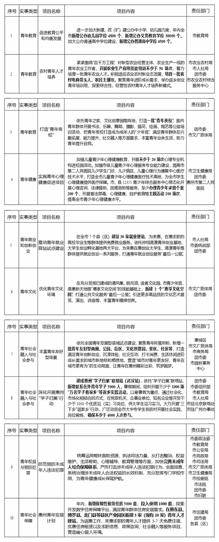 2024年惠州青年民生實事發(fā)布,分5大類10小項重點項目