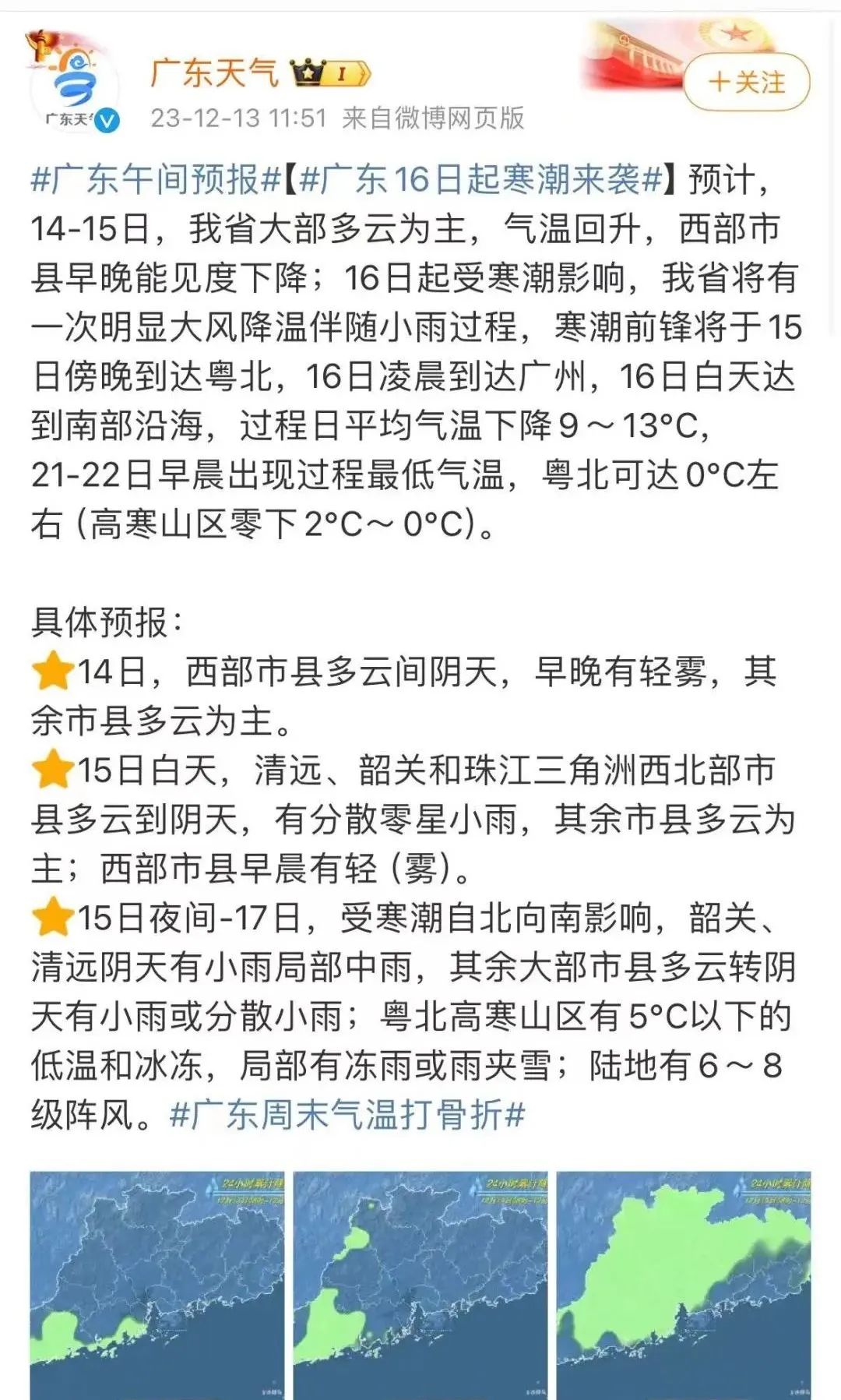 16日起,廣東寒潮來襲