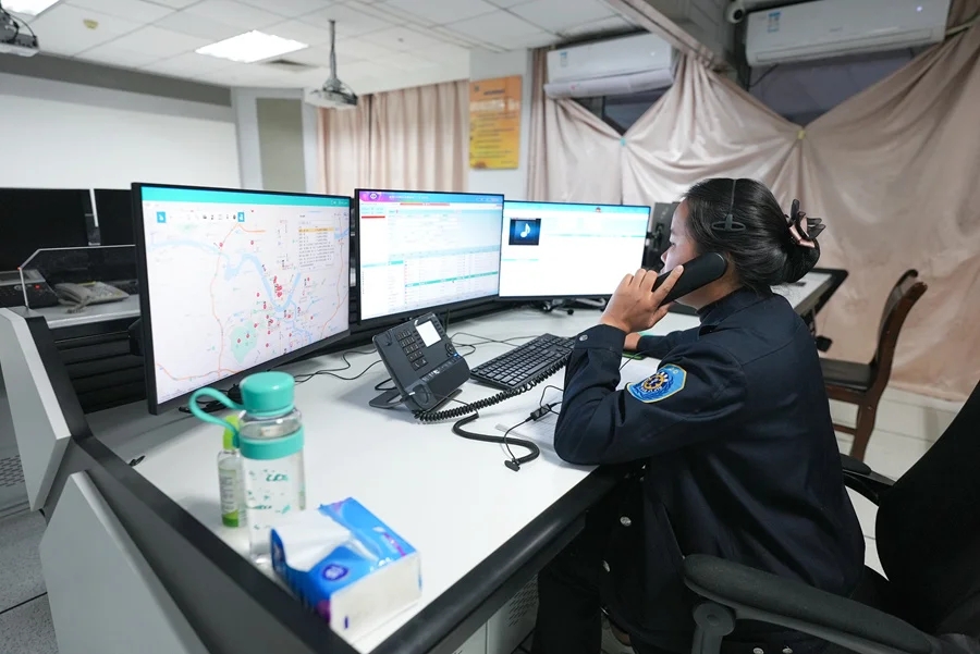 惠州市120急救指揮中心,調(diào)度員們正在接聽來電。