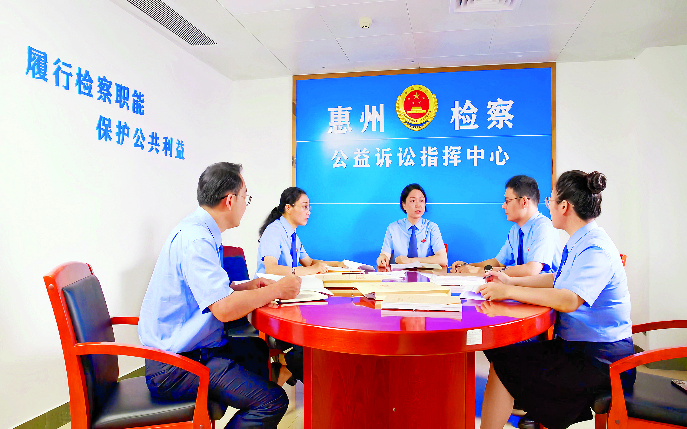惠州市人民檢察院公益訴訟辦案團隊在開展案件討論。