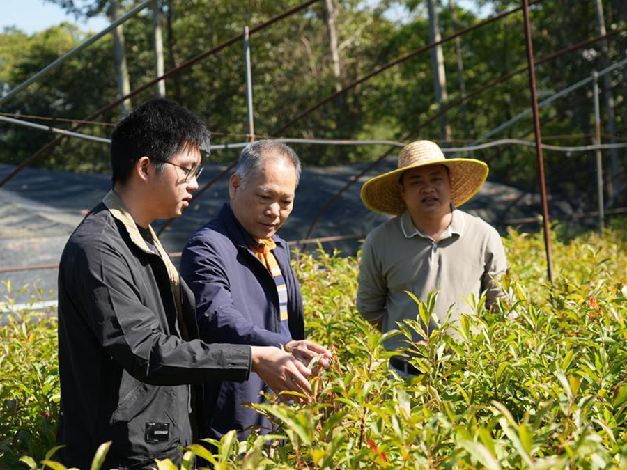 惠州林業(yè)部門工作人員到惠州市沁林綠化有限公司苗圃場(chǎng)查看苗木生長(zhǎng)情況。