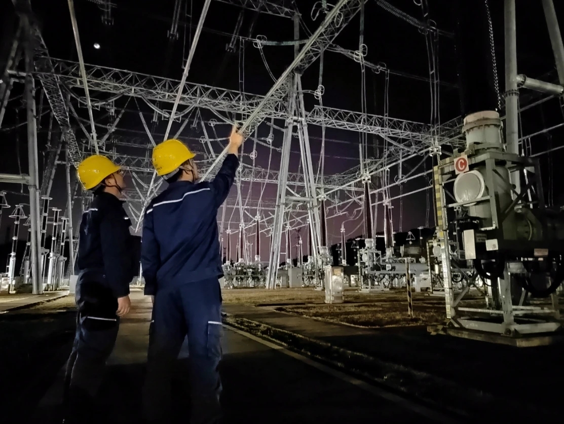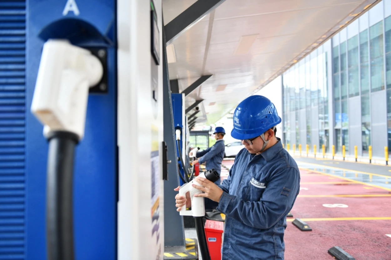 惠州惠城供電局運(yùn)維人員正在對望江綜合能源充電站進(jìn)行安全檢查 陳凌攝