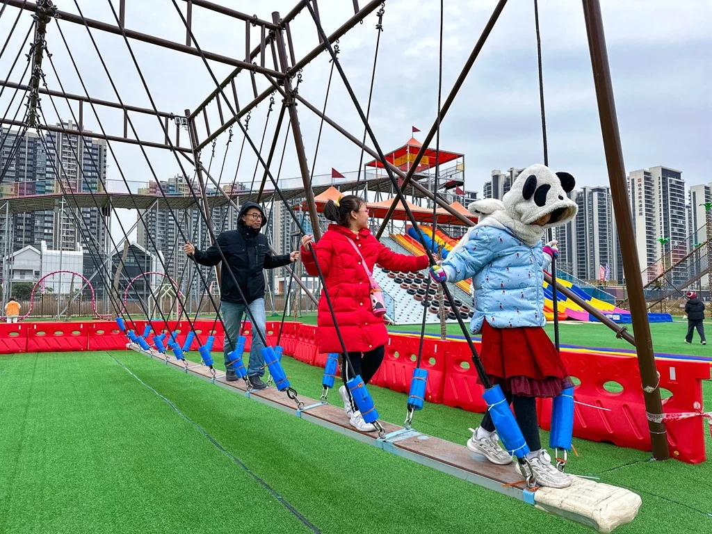 “快!我爬上來了,你也抓緊點。”“我快上來了,真是太好玩了!蹦Хǔ潜ず筒屎缁朗怯螛穲@的王牌項目,魔法城堡這個大體量戶外親子樂園項目由可自由組合的超大型無動力游樂設(shè)備組成,有蹦床、滑梯、天空步道等,充滿童趣和體驗感。彩虹滑道長約100米,在惠州同類項目中數(shù)一數(shù)二。