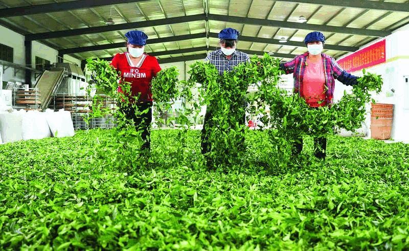 茶葉攤晾。