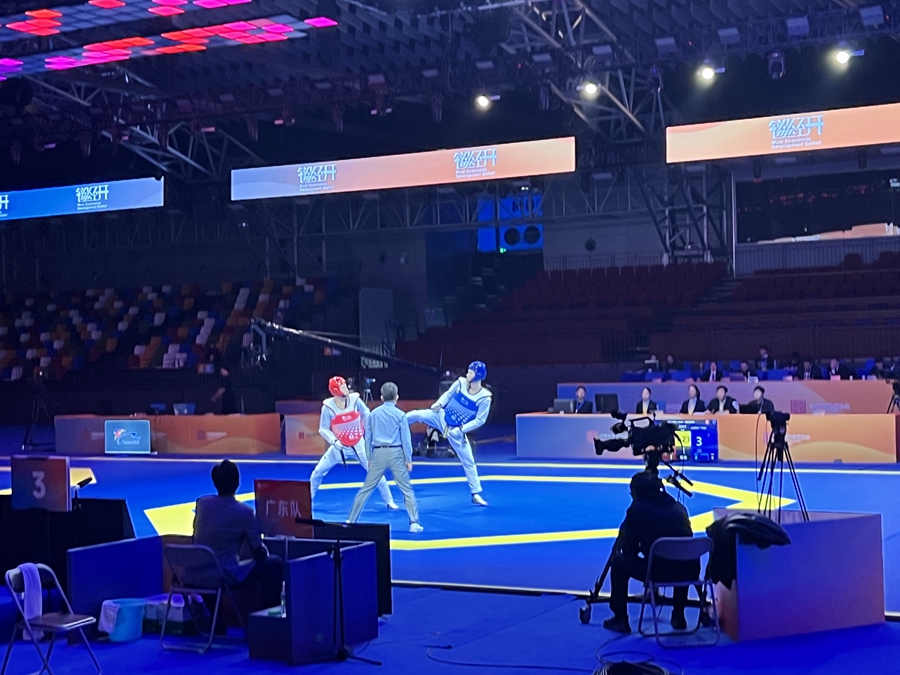 12月27日,惠州市體育運動學校培養(yǎng)輸送的運動員王要錫在2023年全國跆拳道冠軍總決賽中獲得男子80以上公斤級冠軍。