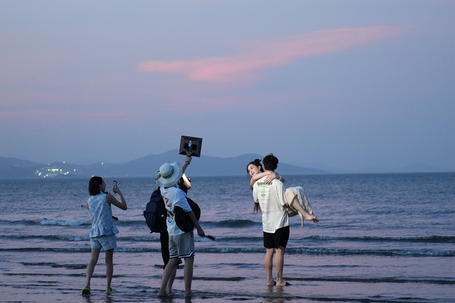 游客在雙月灣游玩。