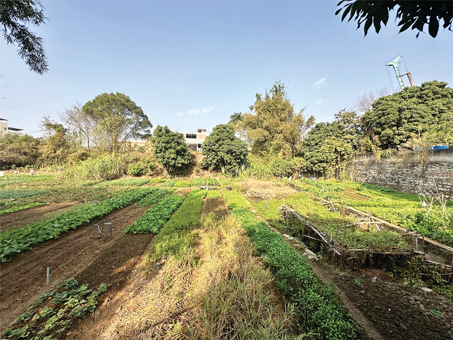 1月3日上午,趁著工作輪空,陳忠文一如往常地沿著東江邊騎行。騎至汝湖鎮(zhèn)新光村新圩村民小組附近時,他放慢速度穿行至村道中,很快被一片瓜菜成畦、青翠欲滴的菜田吸引了。他便停下自行車,拾級而下,走在田埂間。