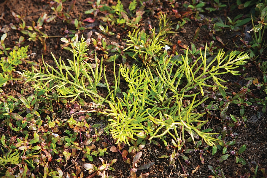 “本來只是漫無目的地走走看看,沒想到在一塊菜地旁,我看到了一種完全不一樣的植物——葉子單體呈圓柱形、肉質(zhì),光滑無毛,整體呈扇形……”陳忠文描述道,平日里他對植物有著濃厚興趣,憑借著自己僅有的一些經(jīng)驗,他感覺這種植物“不一般”。于是,他第一時間將其拍下,發(fā)送給結(jié)識已久的中國林學會(永久)會員、生物高級教師、博羅縣第二中學教師周天來,請他幫忙鑒定。