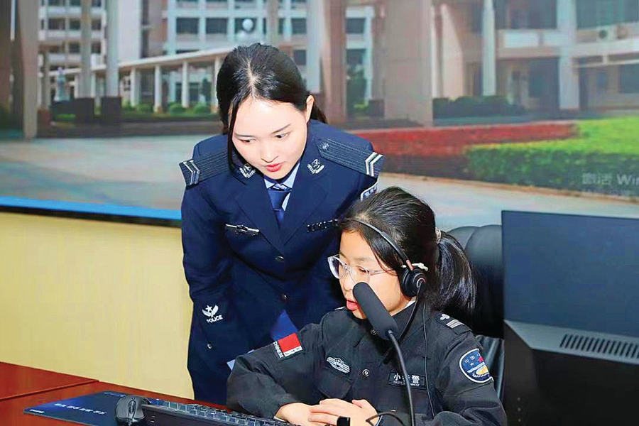 民警為小朋友講解110接處警流程。
