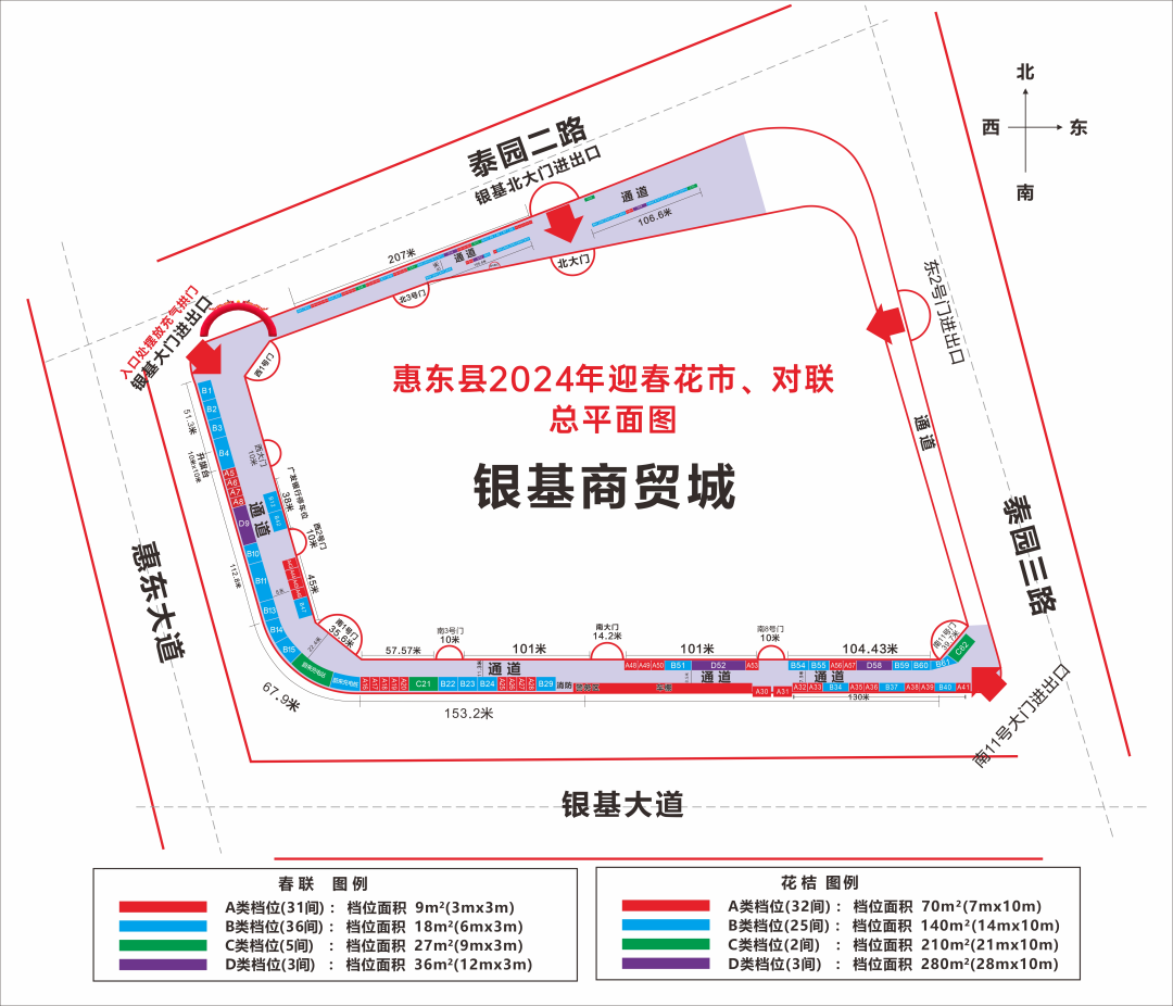 花市位置:縣銀基商貿(mào)城廣場(chǎng),迎春花市分花桔區(qū)和春聯(lián)區(qū)。