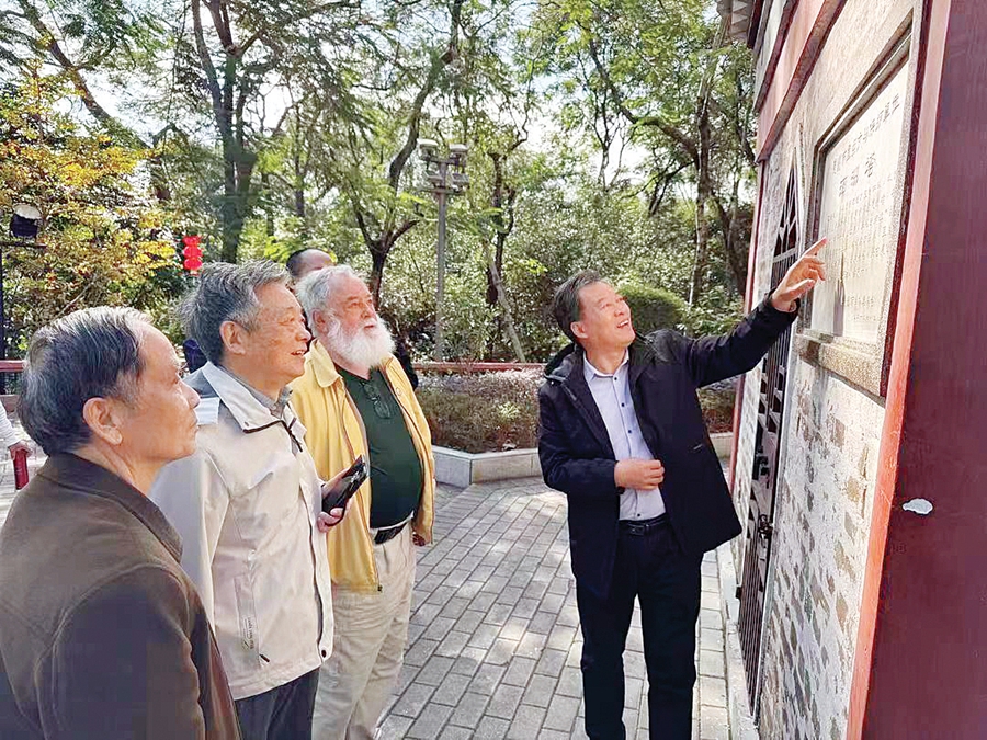 美國作家、翻譯家、漢學(xué)家比爾·波特(右二)在市東坡文化協(xié)會相關(guān)專家的陪同下,參觀惠州西湖泗洲塔。