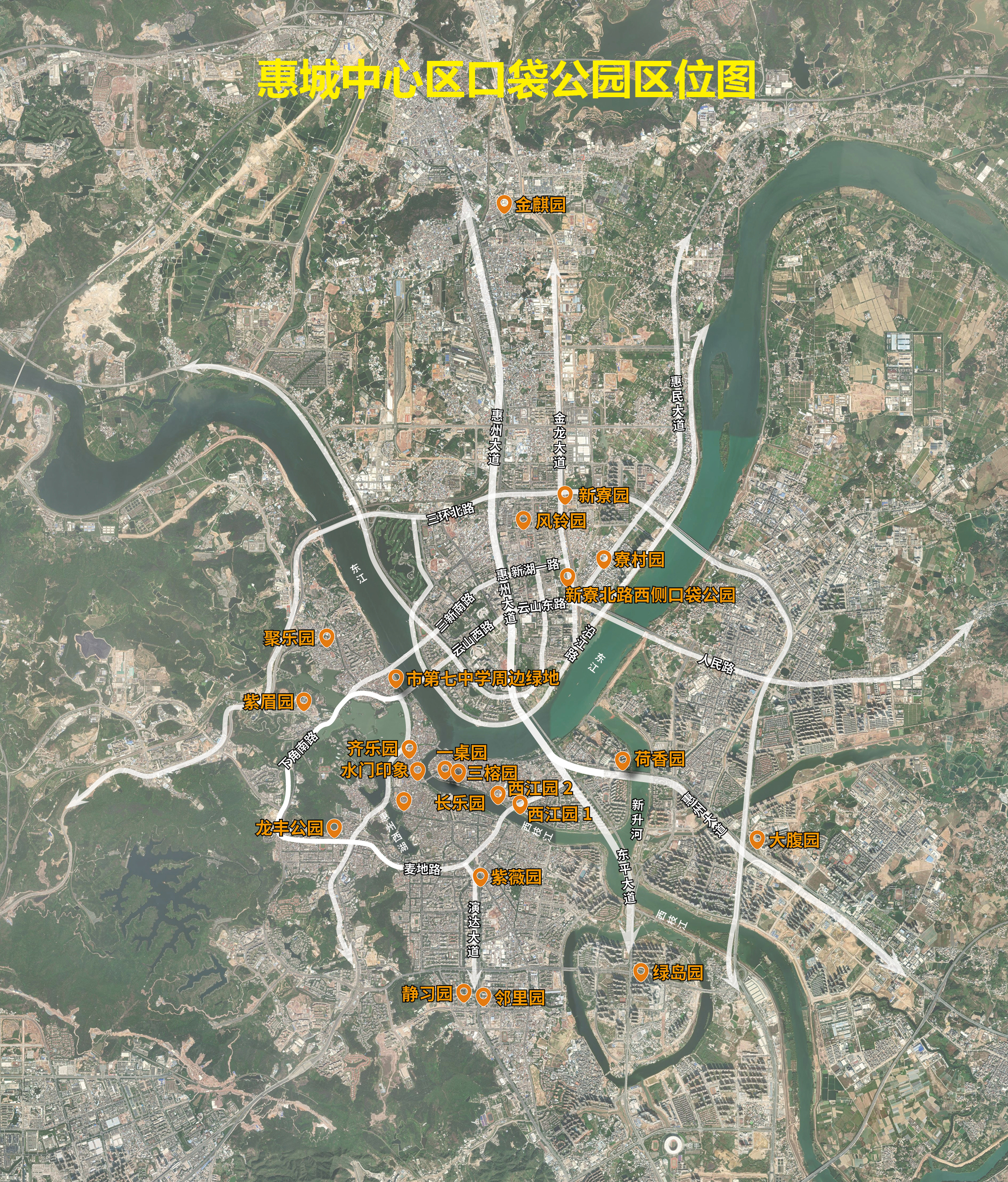 2023年惠城中心區(qū)建成12個口袋公園,目前共有22個總面積近9萬平方米