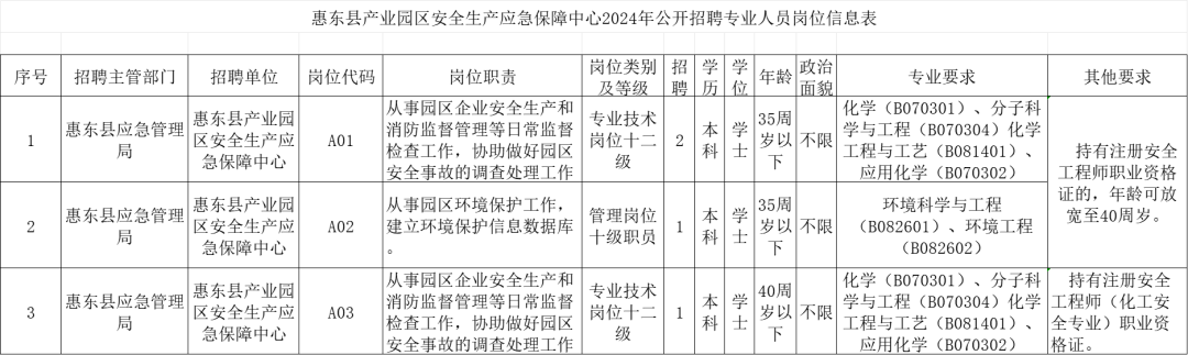 惠東縣產(chǎn)業(yè)園區(qū)安全生產(chǎn)應(yīng)急保障中心公開(kāi)招聘專業(yè)人員