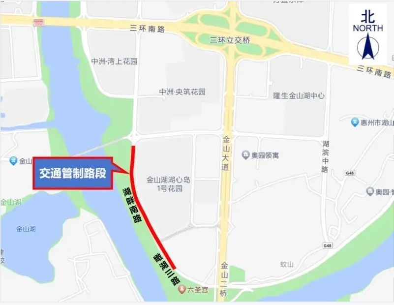 市區(qū)湖畔南路、瞰湖三路臨時交通管制示意圖。