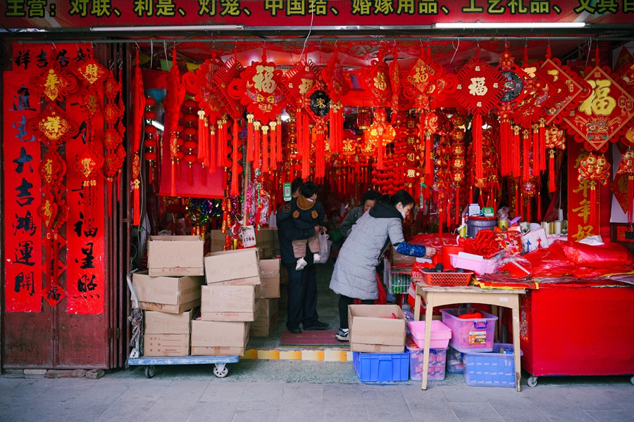 春節(jié)將近,冒著寒冷也要挑選春節(jié)飾品。