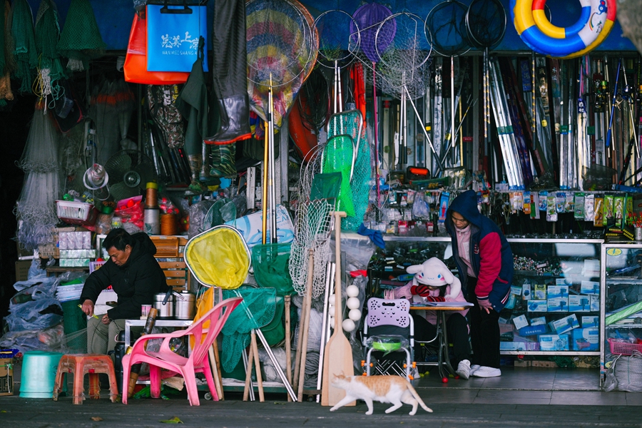 寒冷的天氣也有別樣的煙火氣。年近年關,不少商家推出新年主題的各類商品,給冬日增添了不少熱鬧和喜慶的氣息。在水東老街,各類年貨和傳統(tǒng)小吃最受市民歡迎。一名商販告訴記者,目前還沒到生意最旺的時候,下個禮拜才進入“辦年貨”的高潮,生意會更紅火。