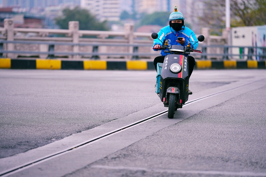 寒風凌冽,外賣小哥送貨忙。