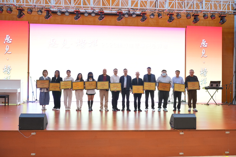 2023年美好生活惠州總評(píng)榜揭曉,上榜商家領(lǐng)取牌匾。東江時(shí)報(bào)記者周楠 攝