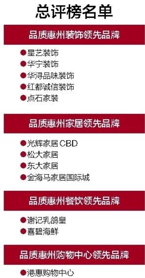 據(jù)了解,惠州總評(píng)榜作為惠州日?qǐng)?bào)社為助推商業(yè)、家居行業(yè)發(fā)展舉辦的一大盛事,評(píng)選活動(dòng)已持續(xù)開展10多屆。一直以來,總評(píng)榜始終堅(jiān)持以服務(wù)消費(fèi)者為宗旨,站在消費(fèi)者立場(chǎng),用消費(fèi)者的眼光選出值得信賴的企業(yè),備受消費(fèi)者和業(yè)內(nèi)人士認(rèn)可。