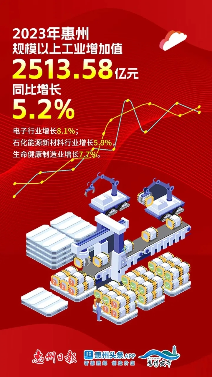 工業(yè)穩(wěn)則經(jīng)濟穩(wěn)。去年,惠州工業(yè)經(jīng)濟繼續(xù)回升。統(tǒng)計數(shù)據(jù)顯示,去年,惠州規(guī)模以上工業(yè)增加值2513.58億元,同比增長5.2%,增速比前三季度上升1.2個百分點。