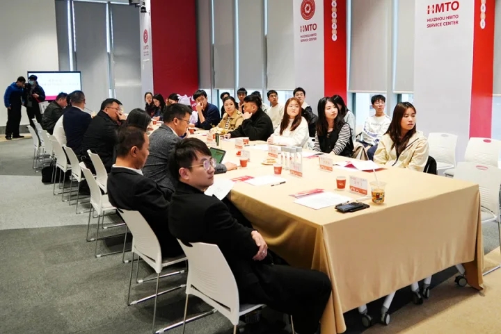 清華學(xué)子們在惠州港澳臺僑綜合服務(wù)中心與企業(yè)、基地、平臺相關(guān)負(fù)責(zé)人等進(jìn)行交流。