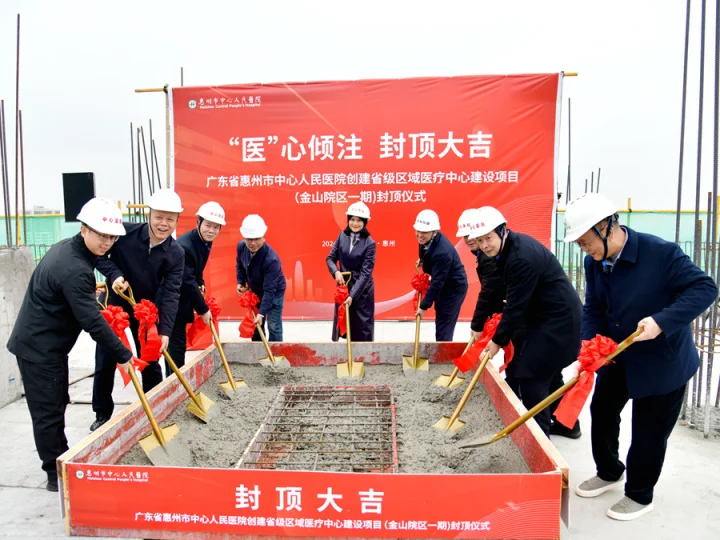 1月29日上午,隨著相關(guān)負責(zé)人及嘉賓揮鍬澆筑,惠州市中心人民醫(yī)院創(chuàng)建省級區(qū)域醫(yī)療中心項目(金山院區(qū)一期)主體工程順利封頂,比預(yù)定工期提早了5個月,提前完成2023年惠州市民生實事工作目標(biāo)。從一紙藍圖到群樓拔地而起,代表的不僅是我市的醫(yī)院規(guī)模擴容,更意味著優(yōu)質(zhì)醫(yī)療資源輻射能力的提升,讓更多市民在“家門口”享受省級高水平醫(yī)院診療服務(wù)的愿景正一步步變?yōu)楝F(xiàn)實。
