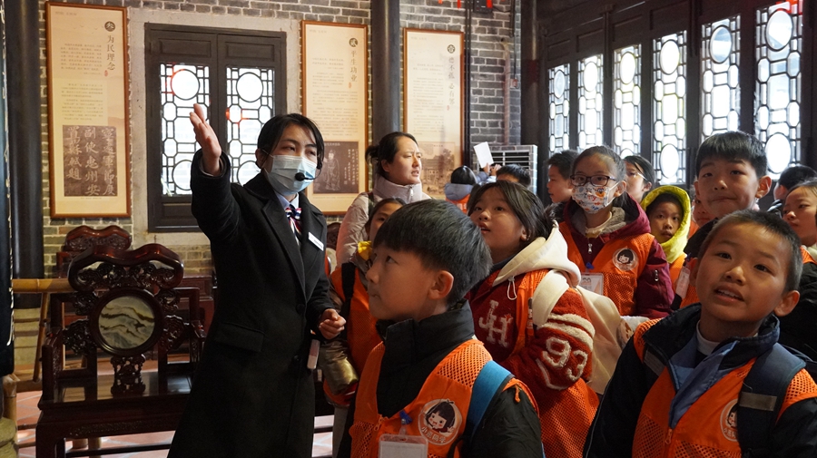 1月23日,惠州大幅度降溫,但是孩子們參加小惠研學(xué)的熱情不減,報(bào)名的孩子準(zhǔn)時(shí)到惠州日報(bào)社集合。紙上得來終覺淺,絕知此事要躬行。研學(xué)是行走的課堂,當(dāng)書本知識與現(xiàn)實(shí)體驗(yàn)相結(jié)合,就會變得鮮活而有溫度。研學(xué)中,孩子們走進(jìn)東坡祠、西湖等地,探尋東坡先生在惠州的故事。東坡祠是國內(nèi)可以明確考證的蘇東坡親自籌建的故居所在地,這里有東坡井、古階步道、古樹名木等歷史遺跡,還修復(fù)了東坡祠、娛江亭、朱池、墨沼、翟夫子舍、林婆酒家等歷史要素。孩子們手拿研學(xué)手冊,細(xì)心聆聽講解員姐姐的介紹,逐一了解東坡先生的生平故事。研學(xué)手冊上有詳細(xì)的任務(wù)和題目,大家邊聽邊記,了解了東坡家族關(guān)系譜、東坡仕途之路等。