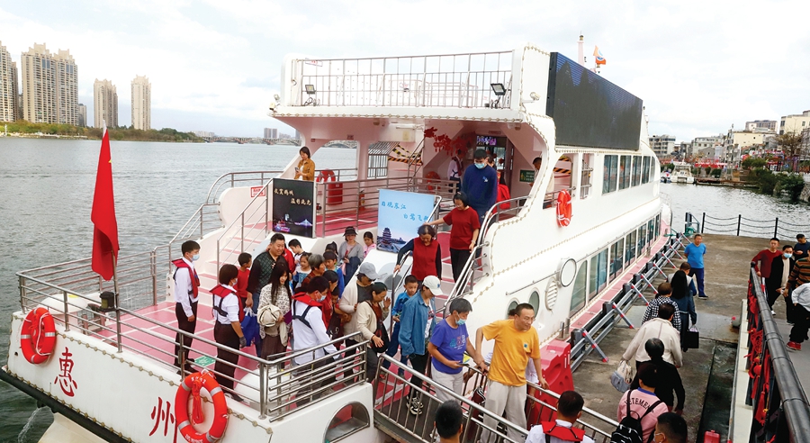 2月2日下午,市民通過預約免費乘坐游船,飽覽東江兩岸美景。2月2日至9日,“東江02號”游船作為擺渡船免費對游客開放,航線為惠州市區(qū)合江樓碼頭至江北渡口所江北碼頭,擺渡航班僅接待預訂乘客,乘客須通過美團平臺預訂航班,憑預訂碼免費乘坐所預訂擺渡航班。通航時間為每天下午3時開始,至晚上7時30分結束(9日晚上不安排航班),擺渡航線單程通行時間約15分鐘。