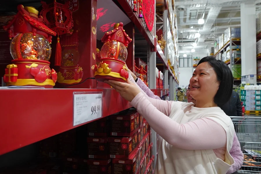 走進山姆門店,迎面而來是川流不息的人流,貨架上,地標(biāo)認(rèn)證的清遠(yuǎn)雞等中西食材組成的“八大硬菜”,像藝術(shù)品般的“東方十美”禮盒,重達(dá)五斤的新西蘭進口帶骨羊腿加拿大產(chǎn)的波士頓龍蝦,別處難尋的山姆定制年飾系列等排放得滿滿當(dāng)當(dāng),市民邊逛邊把貨物放進購物車,整個店里熱鬧非凡。