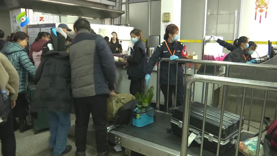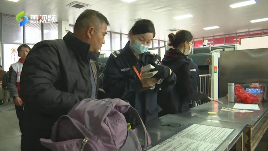 春運(yùn)期間,惠州火車站擠滿了攜帶大包小包行李的旅客們。因?yàn)樾欣钶^多,進(jìn)站口的安檢員們這幾天都十分忙碌,他們一邊安檢篩查違禁品,一邊還給旅客們進(jìn)行科普。