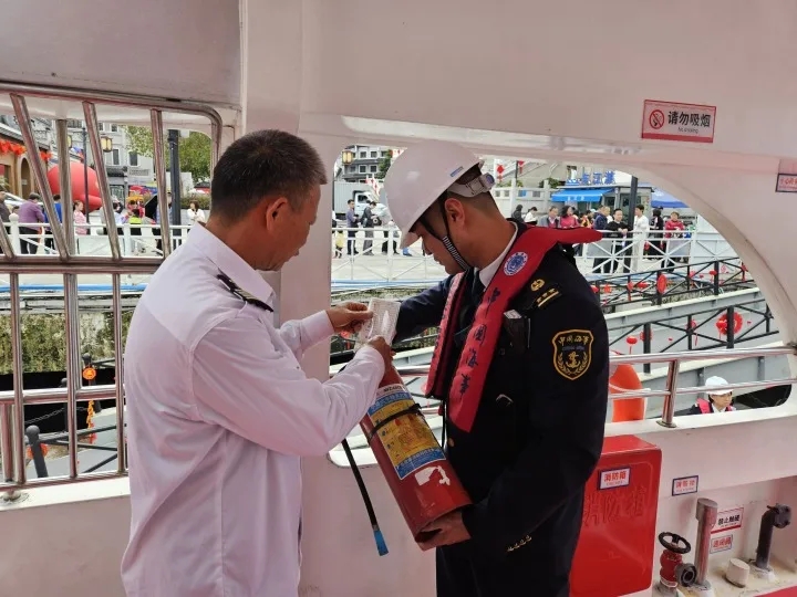 為保障活動期間旅客水上出行安全,東江海事處提前對“東江02”號游船開展安全檢查,重點(diǎn)檢查消防、救生、動力等關(guān)鍵性設(shè)備和船員關(guān)鍵性操作,對船舶相關(guān)證書、從業(yè)人員適任證書進(jìn)行再次核對登記,認(rèn)真排查船舶安全隱患,確保船舶適航、船員適任。