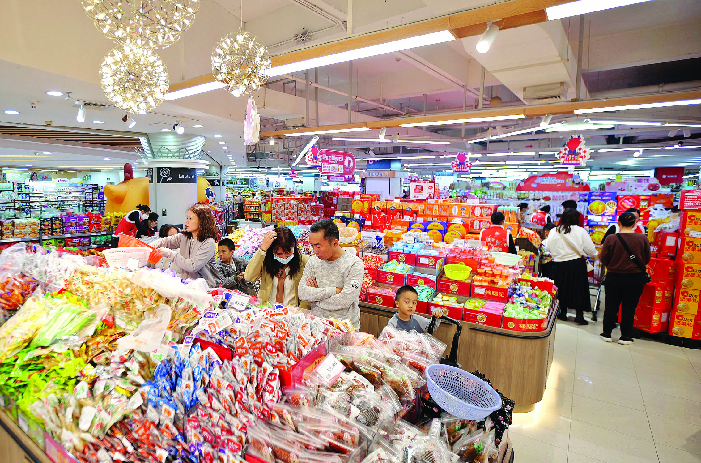 市民在麗日購物廣場江北店購置年貨;葜萑請笥浾唿S鑫威 攝