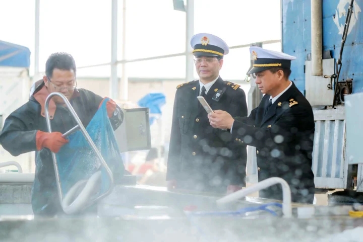惠州海關(guān)關(guān)員對擬出口鰻魚開展現(xiàn)場監(jiān)管。攝影 通訊員吳敏